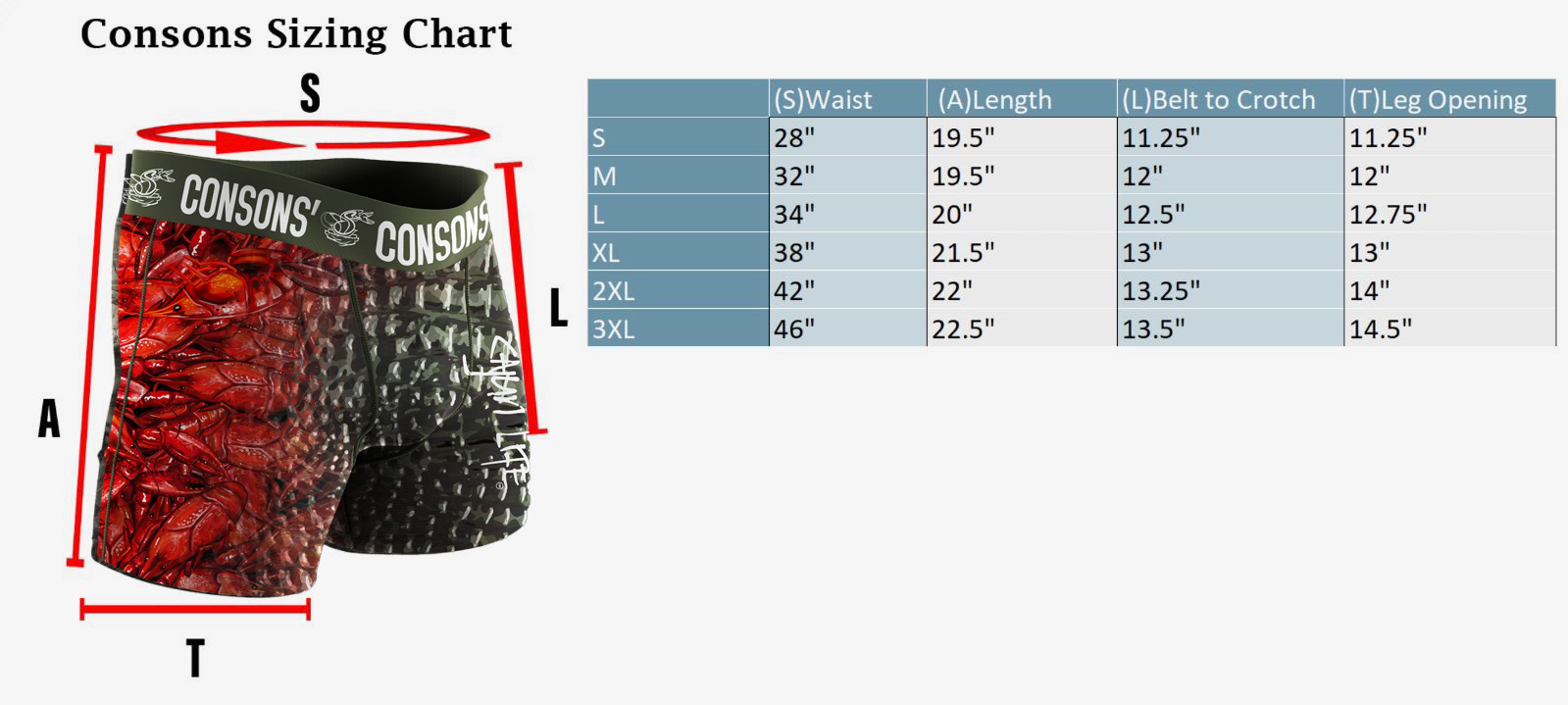 Cajuns call their underwear, Consons'... and these are 90% polyester 10% spandex, +30 UPF for UV protection from the sun... They're Ultra-Soft/Light, moisture wicking and Anti-Micro Bacterial to tame DAT SWAMP ASS!... AND MOST OF ALL - THEY LOOK COOL!!!